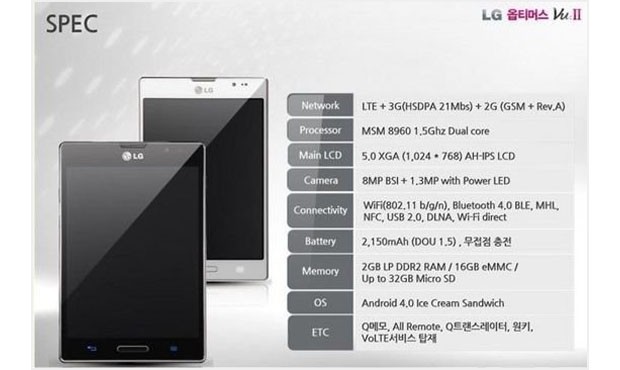 Aparecen por sorpresa las especificaciones del LG Optimus Vu II