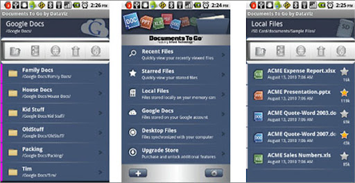 Desde Android Argentina les traemos otro procesador de texto para aquellos que no les gusta quickoffice o no les funciona en su versión de android que tienen, acá esta Documents To Go Full, primero deben bajarse la versión gratis que aparece en el market o la descargan al final del post y una vez instalada la versión free instalan el Documents To Go Full Key donde esta llave abre características premium tales como la edición, Google Docs y Hojas de PDF de Adobe.