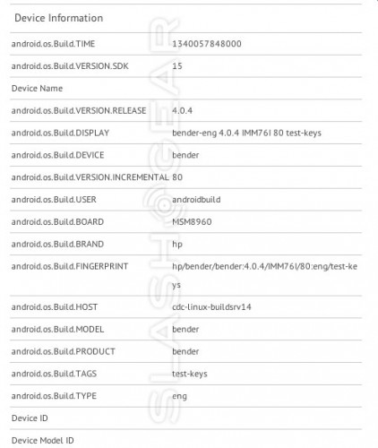 Parece que el smartphone de HP vuelve al universo con Android 4.0 Ice Cream Sandwich para retomar el volante donde webOS dejó. Lo que estamos viendo aquí es un conjunto de resultados de la prueba GLBenchmark que muestra un dispositivo cuyo nombre en código es Bender con la marca HP. es un Qualcomm S4 procesador de doble núcleo, así!